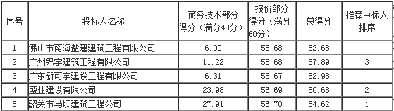 第一中標候選人:韶關(guān)市馬壩建筑工程公司,投標報價:¥1933008.67元;