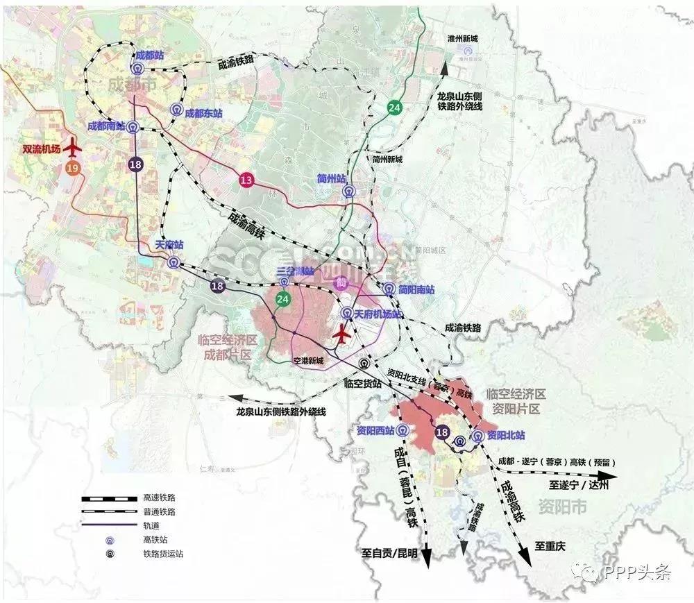 天府國際機場臨空經濟區規劃面積298平方公里,其中成都片區199平方公里、資陽片區99平方公里。未來這里將布局臨空制造、綜合服務、高端農業,根據規劃,新城將導入30萬城市人口,帶動GDP增長,人口規模、經濟總量相當于再造一座資陽主城區。